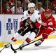 Senators forward Colin White protects the puck from the Red Wings' Mike Green (25) during last Tuesday's game at Detroit. White is expected to receive much more playing time in his second NHL game on Sunday against the Islanders. Gregory Shamus ...